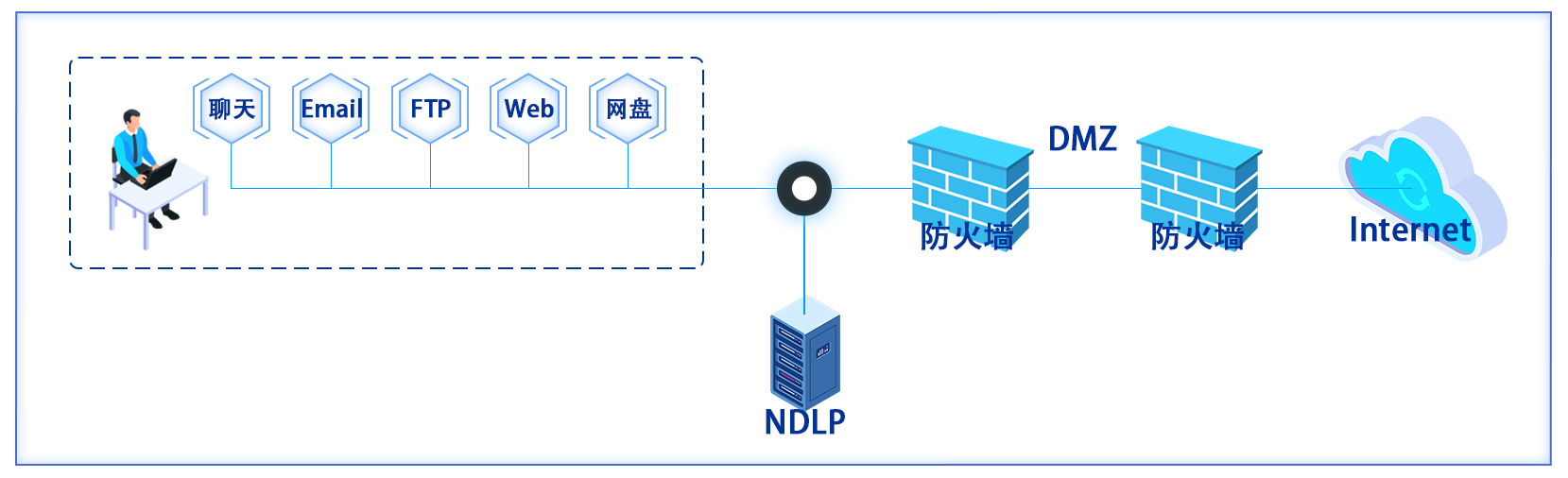 数据防泄漏系统(Data Loss Prevention)是基于深度内容识别技术,对传输中、存储中、使用中的数据进行检测,依据预先定义的策略,识别敏感数据,实施特定响应,采取特定动作,最终能有效防护敏感数据的数据安全系统。